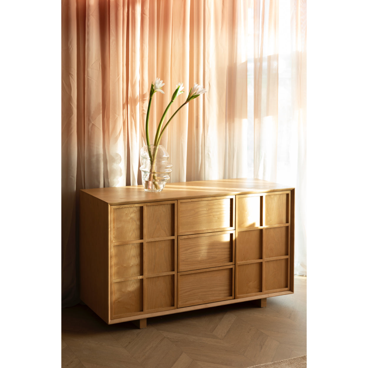 Calm and serenity: that’s what defines the detailed cabinets of the Raster series. The name refers to the wooden slats forming a diamond-shaped pattern on the drawers and doors: creating a beautiful play of light and shadow. The straight legs lift the cabinet slightly from the floor, giving it a look reminiscent of Japanese craftsmanship combined with Scandinavian clarity. Essential for a tidy Japandi interior Marie Kondō would be proud of.