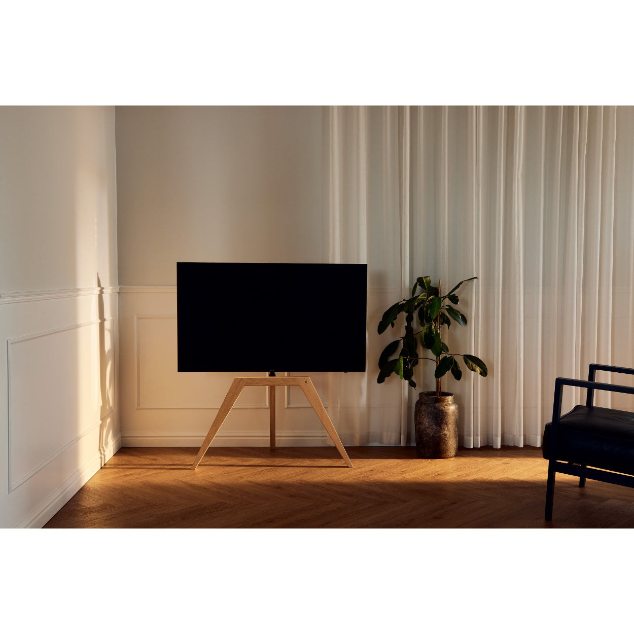 The TV stand offers freedom in your layout and makes it easy to move the TV from room to room—perfect if you want flexibility in everyday life or need to use the screen in the living room, kitchen, or office.